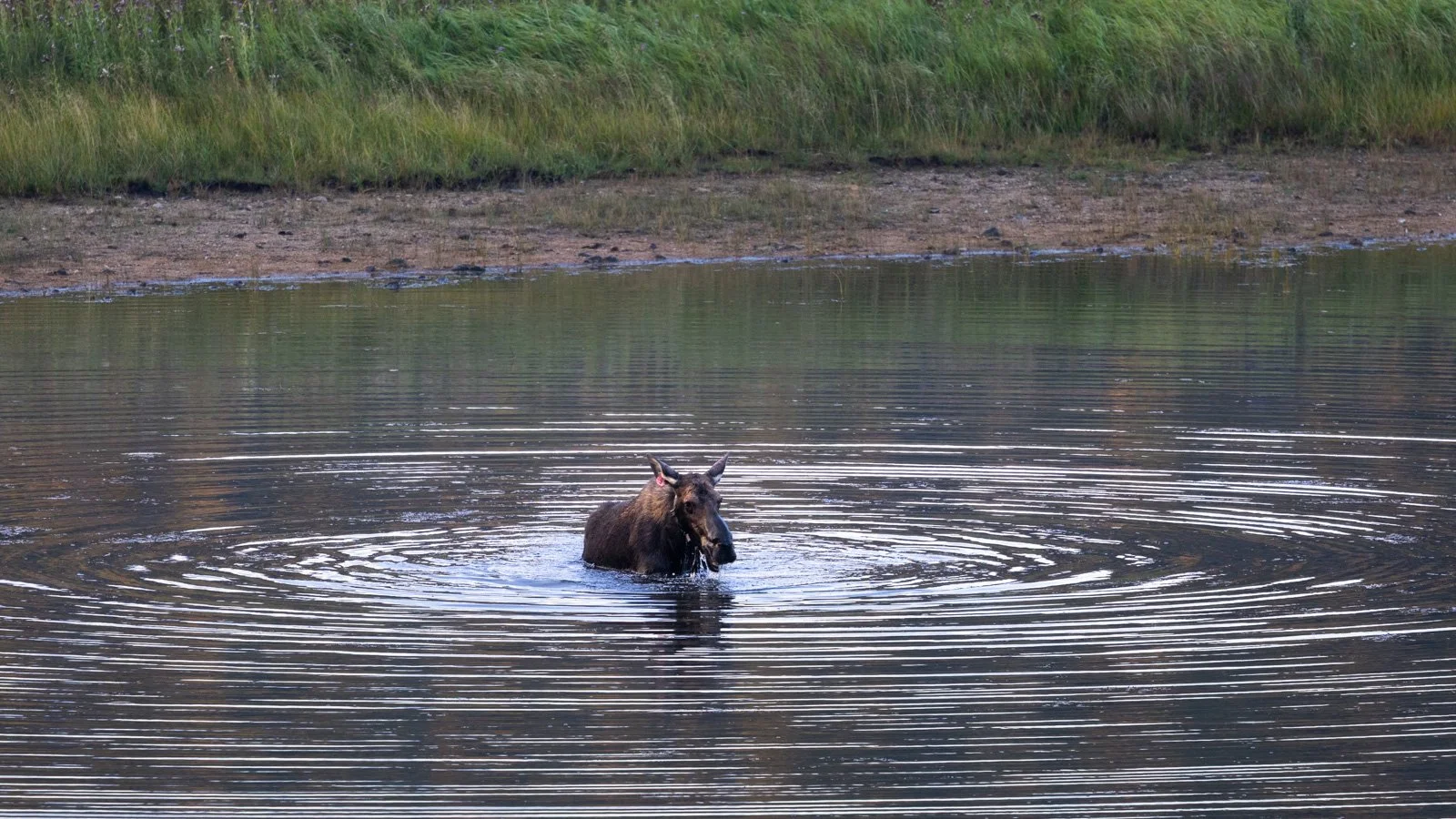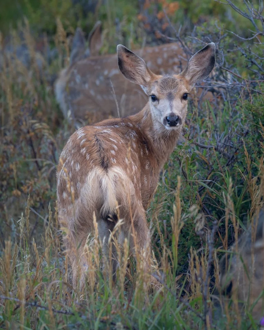 Going back to the car from looking at the moose, we were surrounded by some mule deer.