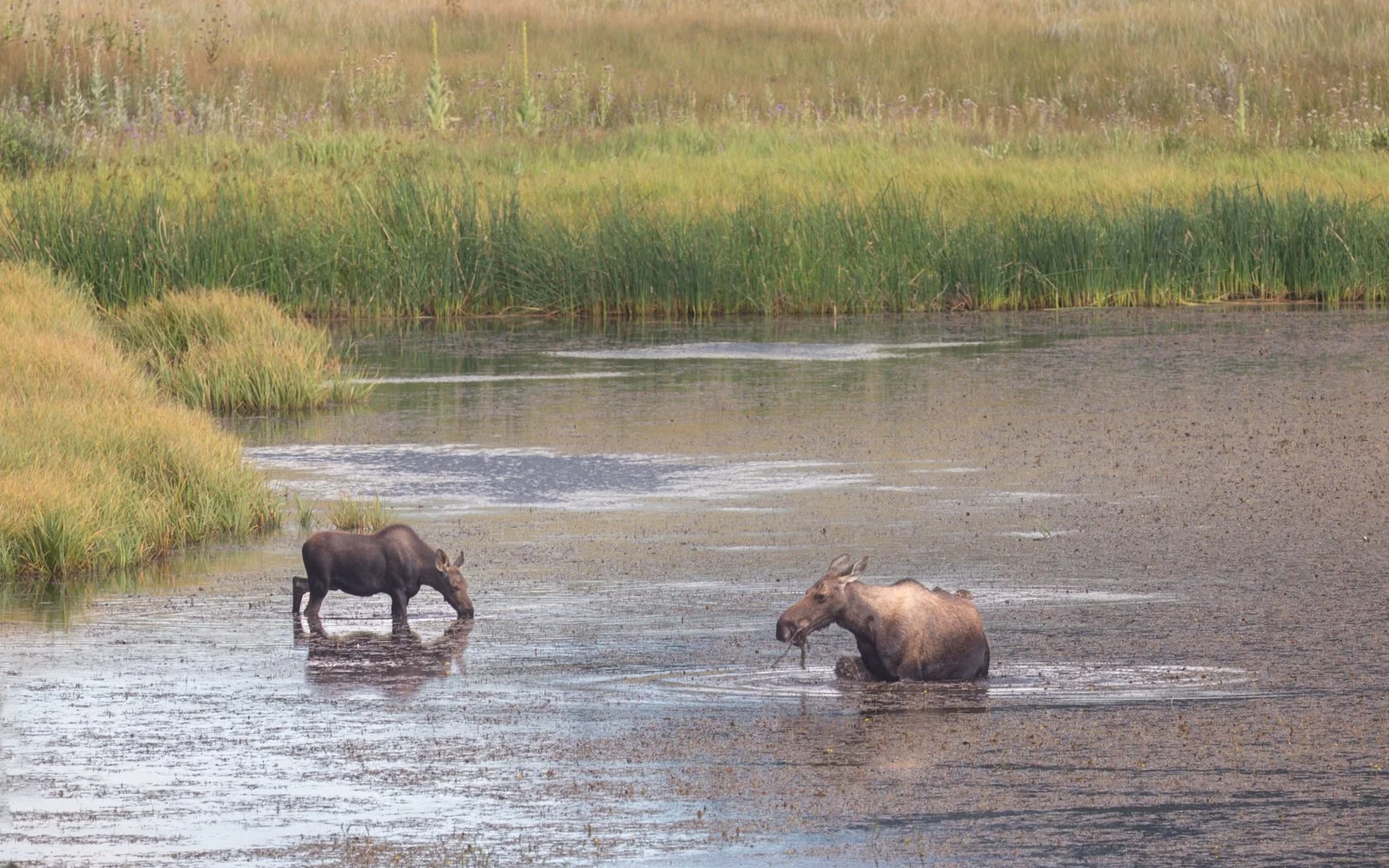 Mama moose and her young one were in Sheep Meadow. We had hoped to see some Big Horned Sheep here, but had to settle for this pair.